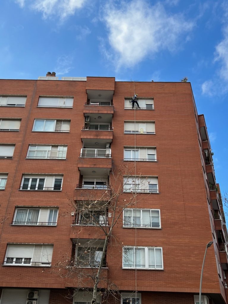 Los trabajos verticales son una solución eficaz para intervenir en altura sin necesidad de andamios. Permiten actuar de forma rápida, precisa y económica en zonas de difícil acceso como patios interiores o cubiertas, minimizando molestias y reduciendo costes. Ideal para actuaciones urgentes o puntuales.